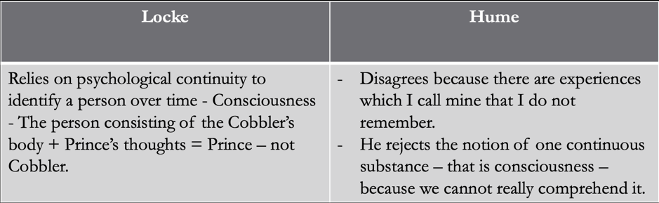 This is the view we naturally and intuitively hold and describes the position of most of the world’s religions excluding Buddhism. Buddhism has a doctrine of anatta or no-self. This is the ego theory by Locke.